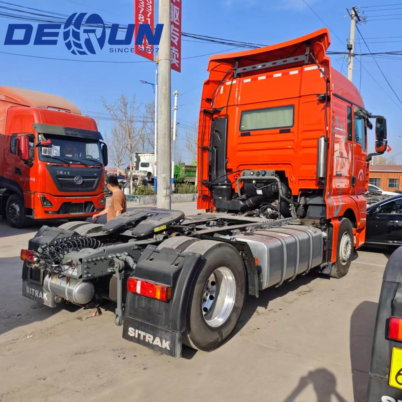Sinotruk Sitrak 4x2 Kafa Traktör Kamyonu, 400 veya 480 HP versiyonlarında bulunan ve yüksek iletim verimliliği ve pürüzsüz dişli kaydırma ile karakterize edilen ZF şanzımanı ile eşleştirilen Çin Ulusal Ağır Hizmet Kamyonu (CNHTC) MC Serisi motoru tarafından güçlendirilmiştir. CAB, sürücü ve yolcular için konforlu bir çalışma ortamı sağlamak için ergonomik olarak tasarlanmış ve elektrikli sunroof, hava yastığı koltukları, otomatik klima ve görsel enstrümantasyon gibi bir dizi konfor özelliği ile donatılmıştır. Buna ek olarak, Sinotruk Sitrak 4x2 kafa traktör kamyonu, sürüş güvenliğini artırmak için gelişmiş akıllı sürücü yardım sistemleri ile donatılmıştır.